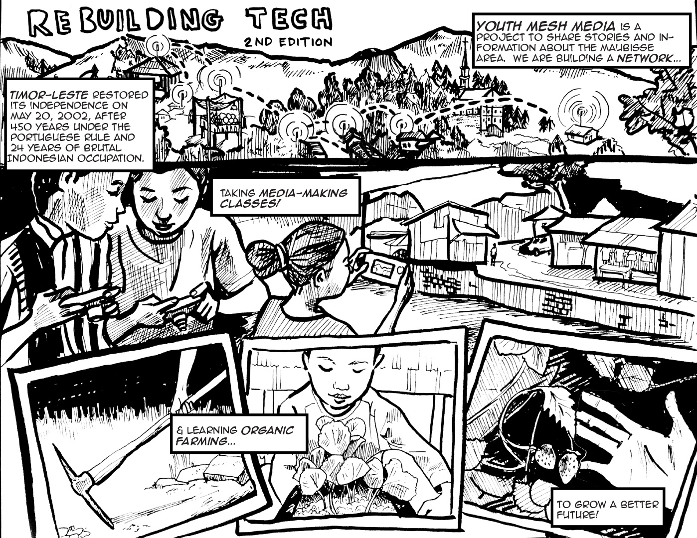 The "(Re)Building Technology" zine presents a collection of tools, stories and practices that support the growth and development of the community technology movement.